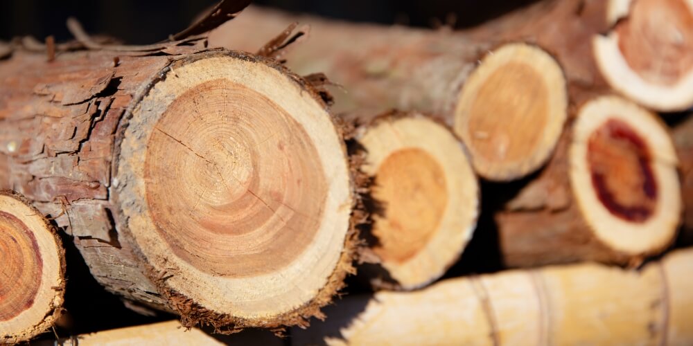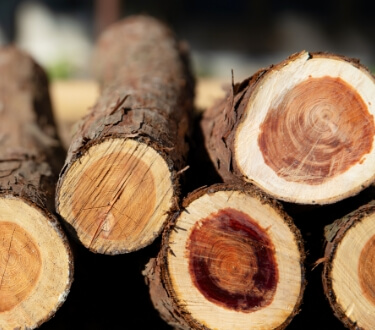 仲介者を通さず、現地で伐採された枝葉と木材が到着。日本三大人工美林の天竜産のヒノキとスギは、高品質が大きな魅力です。