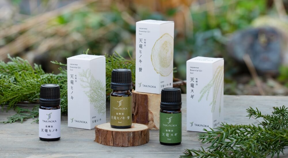 TAKINOKAアロマファクトリーは、天竜地域に隣接する周智郡森町に設立。地元の湧き水を使用し、水蒸気蒸留法による抽出作業を行っています。